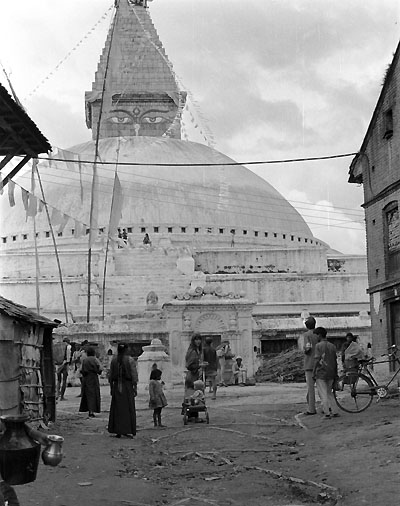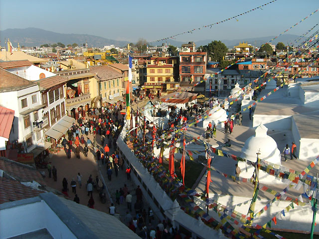 Когда в 1950 году тибетские переселенцы, спасаясь от китайского вторжения, прибыли в Непал, они решили поселиться именно здесь, поближе к ступе. Так вокруг нее вырос город – центр тибетского буддизма.