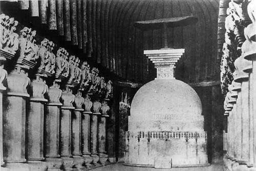Предшествующая ей постройка восходит непосредственно к Ашоке (III в. до н.э.). Эта постройка служит идеальным образцом ранних буддийских ступ.