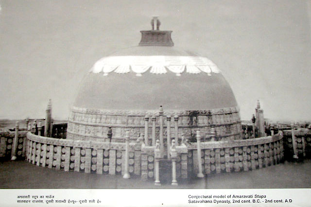 Известным примером являются ступы Амаравати (III в. до н. э.) и Нагарджунаконда (большая ступа монастыря Апарамахавинаселия построена наверняка во времена Нагарджуны), от которых, к сожалению, сохранились только основа и рельефные пластинки. В III и IV веках в качестве горизонтальной проекции здесь использовали центральный буддийский символ – колесо Дхармы.