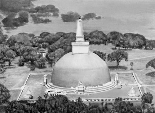 Согласно дошедшей до наших дней исторической хронике Шри-Ланки, Будда лично три раза посещал эту страну и заложил фундамент для Ступы Махиньянгана. Император Ашока в III веке до н.э. отправлял на Шри-Ланку своего сына Махинду Тхера, который познакомил население с буддизмом в форме традиции Тхеравада. Несмотря на то что Шри-Ланка с давних пор является оплотом Тхеравады, было время, когда здесь практиковали и Алмазный путь. В окрестностях цейлонской столицы Анурадхапуры во времена Махинды были построены первые ступы. Ступы на Шри-Ланке называются дагобами.