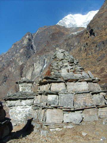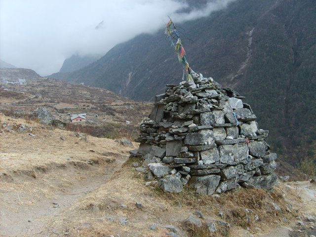 Такие ступы построены или в качестве путевых знаков (их часто ставят на перевалах или ключевых точках дороги), или чтобы утихомирить дикие силы природы – как подношение Буддам. Сооружение таких ступ можно рассматривать как некое быстрое, но осознанное действие. Просто поднявшись на перевал или в красивое место, из подручного материала человек может сделать то, чего не сделает природа, – сложить камни друг на друга. Как известно, буддийское Просветление – высшее проявление сознательности, присутствующей во всем, таким образом, сооружение такой ступы может считаться малым шагом на пути к этой цели.