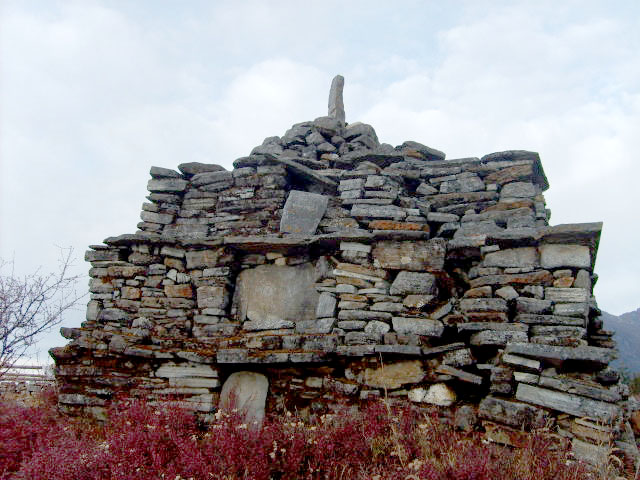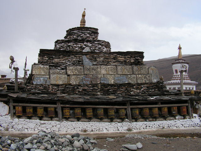 Здесь примеры других простейших ступ, построенных в Тибете. Высоко в горах не всегда находятся средства, силы и материалы на создание полноценной ступы, и тогда вот такая «упрощенная» ступа становится доступным заменителем.