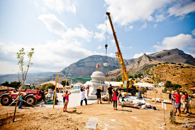 Алекс и Патриция, ставшие по просьбе ламы Оле "родителями" ретритного центра в Греции, с особенным чувством впервые принимали на этой земле более 2000 человек, приехавших на открытие ступы. На заре истории КБЛ представить здесь проведение большого курса было сложно не только из-за суровых условий гор Пелопоннеса, но и из-за полного неприятия со стороны местного населения. Первые постройки дважды сжигали. Однако, благодаря совместной работе идеалистов с запада и греческой Сангхи, теперь буддизм в Греции официально признан на государственном уровне. Алекс и Патриция рассказали, что место это действительно обладает необычной силой и моментально отражает состояние ума – большинство дел здесь приходилось переделывать как минимум по два раза, всё и все порой казались такими запутанными, а работа не клеилась до такой степени, что приходилось останавливаться и объявлять медитационный ретрит на несколько дней. Зато медитировать здесь – это самый большой подарок, который только можно себе представить: нигде практика не продвигается так быстро и радостно.