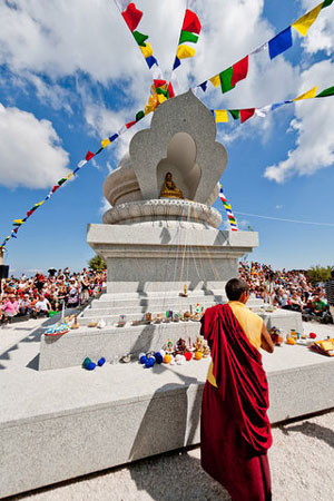 Инаугурация длилась несколько часов. Не заканчивая медитацию Калачакры, рано утром все пришли к ступе и, чтобы присутствовать на церемонии, которую проводили ламы. Кто-то из пришедших видел орлов, кто-то маленькие радуги в небе. Лама Оле позже сказал, что в какой-то момент тучи просто разошлись, и на ступу и на всех нас пролился свет, и это было благословением. После пуджи и некоторых ритуальных моментов прозвучали благодарственные речи организаторов проекта, и все смогли получить благословения лам и пройти вокруг ступы.