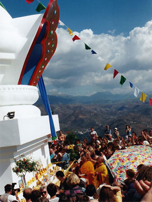 17 октября 1994 ступа наконец была готова. На этот день были запланированы две инаугурации ступы: «внутренняя», для практикующих буддистов, в форме пуджи, и «официальная», куда пригласили телевидение, прессу и живущих в округе соседей. Пуджа на инаугурации ступы – это церемония для «оживления» построенного сооружения. Фактически с этого момента ступа начинает выполнять свои функции.