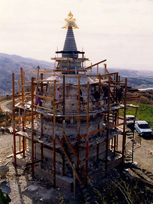 Сама стройка началась 17 июля 1994 года, когда в Карма Ген приехал Лопен Цечу Ринпоче. В этот день были сделаны точные замеры земли, предназначенной для ступы, и закопаны первые бумпы (ритуальные вазы).