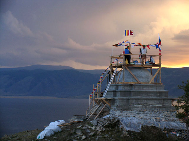 Строительством ступы руководил Ранриг Дордже Ринпоче (Непал, Катманду). На его счету уже более 40 построенных буддийских ступ в разных странах мира, в том числе огромная ступа в Бутане, построенная по заказу бутанского короля. Ступа на острове Огой сооружена с соблюдением всех необходимых правил и с выполнением всех необходимых ритуалов и практик во время строительства. Проводимые обряды, по свидетельству очевидцев, сопровождались благоприятными чудодейственными знаками, так, во время призывания водных нагов над Ольхоном начался сильнейший ливень, в процессе строительства над ступой неоднократно фиксировались яркие радуги, причем одна из них, на глазах у строителей, возникла из основания ступы и другим концом радуга соединила остров Огой с Ольхоном.