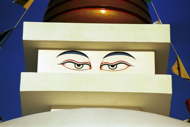 Вазу можно рассматривать как тело Будды, ниша или окошко, в которое часто ставят статую Будды, находится на уровне сердца, небольшая квадратная часть Тре представляет собой лицо Будды. На непальских ступах с четырех сторон Тре рисуются всевидящие глаза Будды, смотрящие в четыре стороны света.