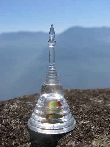 Такое же Древо Жизни можно найти в каждой заполненной и благословленной буддийской статуе. На Древе Жизни рисуются и к нему прикрепляются мантры для тела, речи и ума, а в больших ступах также статуи для качеств и активностей, и, таким образом, оно составляет центр силового поля. А подготовленное и заложенное согласно инструкциям ламы наполнение – его окружение. Таким образом, ступа представляет собой совершенную вселенную.