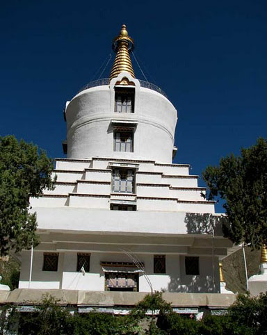Центральная часть этой ступы прямоугольная, с прямоугольными выступами по четырем сторонам.